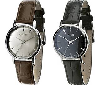 Werk: Swiss Made Ronda Quartz Werk, Caliber 763 (5 Jewels) Funktionen: Stunden, Minuten und Sekundenzeiger Gehäuse: Edelstahl, Krone indentifiziert mit dem GANT-Logo. Water resistant 5 atm. Ziffernblatt: Silbernes oder schwarzes Ziffernblatt im Retro-Style mit diamantgeschliffenen Stundenmarkierungen, verhärtetes Mineralglas mit doppelseitig blendfreier, abriebfester Verarbeitung. Armband: Voll gefüttertes Krokolederarmband in braun oder schwarz, Dornschließe identifiziert mit dem GANT-Logo. |  | |